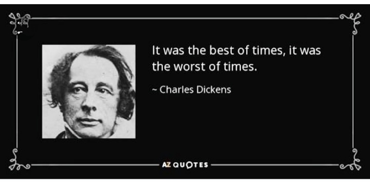 ডিকেন্স বলেছিলেন ‘ইট ওয়াজ দি বেস্ট অব টাইমস, ইট ওয়াজ দি ওয়ার্স্ট অব টাইমস’। তেমনই এটি যেমন নিকৃষ্ট সময়, তেমনই সর্বোত্তম সময়।