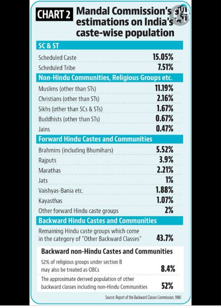পিছিয়ে পড়া শ্রেণীর সামাজিক, শিক্ষাগত পরিস্থিতি খতিয়ে দেখার জন্য দেশের দ্বিতীয় কমিশন মন্ডল কমিশন। তারা রিপোর্ট দেয় ১৯৮০তে। দশ বছর পর তা কার্যকরী করেন তদানীন্তন প্রধানমন্ত্রী বিশ্বনাথ প্রতাপ সিং। মন্ডল কমিশন সমগ্র জনগণকে ১০০ শতাংশ ধরে নেন। ওই সময় শেষ জনগণনা ছিল ১৯৭১ সালের । সেখান থেকে প্রাপ্ত জনসংখ্যার এস সি , এস টি ও অহিন্দু শতাংশকে বিয়োগ করে পান এস সি,এস টি অংশ ব্যতীত হিন্দু শতাংশকে। শেষ জাতিভিত্তিক ১৯৩১ এর জনগণনা থেকে মন্ডল পেয়েছিলেন সমাজের তথাকথিত উচ্চবর্ণীয় জনগণের শতাংশ। হিন্দু শতাংশ থেকে উচ্চবর্ণীয় জনগণের শতাংশ বিযুক্ত করে তিনি নির্ণয় করেছিলেন হিন্দু পশ্চাদপদ জনগণের শতাংশ। ধর্মীয় সংখ্যালঘুদের মধ্যের পশ্চাৎপদতাকে অন্তর্ভুক্ত করার জন্য তিনি অহিন্দু জনসংখ্যার শতাংশের অর্ধেক পশ্চাৎপদ ধরে নিয়ে তাকে যুক্ত করে দেন। এইভাবে হিন্দু, অহিন্দু মিলিয়ে মন্ডল কমিশন ওবিসি জনসংখ্যা নির্ণয় করেন মোট জনসংখ্যার ৫২ শতাংশ। গাণিতিক এই পদ্ধতি গ্রহণ করার সময় সাহায্য নেওয়া হয়েছে ১৯৩১ এর জাতিভিত্তিক জনগণনার। আজ থেকে নয় দশক আগেকার। সাহায্য নেওয়া হয়েছে ১৯৭১ এর জনগণনার তথ্যের। আজ থেকে পাঁচ দশক পূর্বের। সেই তথ্য আজকে সময়োপযোগী নয়। ওবিসি নির্ণয়ের মন্ডল গৃহীত প্রক্রিয়া যে নিখুঁত বা বিজ্ঞানসম্মত নয় সেটা বুঝতে কোন অংকের ছাত্র হতে লাগে না। কিন্তু সেইসময় তার কাছে অন্য কোনো তথ্য না থাকাতে এর বিকল্প কিছু ছিল না।১৯৩১ এর যে জাতিভিত্তিক জনগণনাকে মন্ডল কমিশনে ভিত্তি করা হয়েছে সেই জনগণনায় তখনকার ব্রিটিশ শাসিত রাজ্যগুলি কেবলমাত্র অন্তর্ভুক্ত ছিল। প্রিন্সলি স্টেটগুলি অন্তর্ভুক্ত হয়নি। ফলে গোড়ায় একটা গলদ ছিলই। মন্ডল কমিশনের সুপারিশ কার্যকরী হওয়ার তিনদশক অতিক্রান্ত। এরমধ্যে দি ইউনাইটেড ডিস্ট্রিক্ট ইনফর্মেশন সিস্টেম ফর এডুকেশন প্লাস (ইউডাইস+) দেশব্যাপী প্রায় এক দশক ধরে প্রাথমিকের স্কুল ছাত্রছাত্রীদের জাতিভিত্তিক তথ্য সংরক্ষন করে যা পেয়েছে তাতে অন্যান্য পিছিয়ে পড়া জাতিভুক্ত মানুষ ৪৫ শতাংশ, তপশিলি জাতি ১৯ শতাংশ, আদিবাসী ১১ শতাংশ -এইরকম ইঙ্গিত পাওয়া যাচ্ছে। ২০০৬ এ ন্যাশনাল স্যাম্পলিং সার্ভে অরগানাইজেশন (এন এস এস ও) ওবিসি সংখ্যা নির্ণয় করে দেখায় যে তা সমগ্র জনগণের ৪০.৯৪ শতাংশ। তফসিলি১৯.৫৯, আদিবাসী ৮.৬৩ শতাংশ। সংখ্যাগত এই বিভ্রান্তি কাটানোর জন্যই প্রয়োজন জাতিভিত্তিক জনগণনার। মুসলিমদের মধ্যেও অন্যান্য পিছিয়ে পড়া জাতিভুক্ত মানুষ রয়েছে। তাদের পরিস্থিতির মূল্যায়ন হয়েছিল শেষ সাচার কমিশনের রিপোর্টে । তাও দেড় দশক আগে। তাদের মধ্যেও এই সময়ে কে এগোলো, কে পিছিয়ে পড়লো জানার জন্য প্রয়োজন জাতি ভিত্তিক জনগণনার।