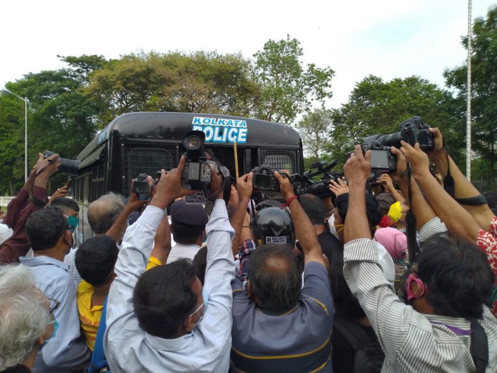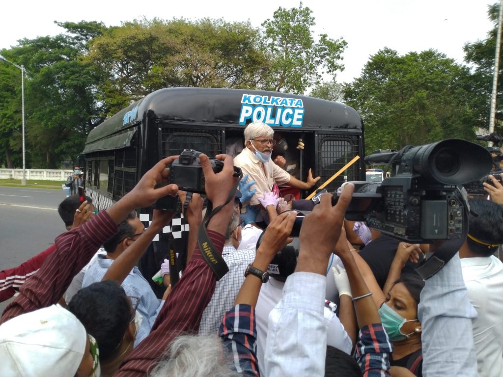 লকডাউনের নিয়মবিধি পালন করে রেড রোডে প্রতিবাদ কর্মসূচি পালনের সময়ে গ্রেফতার হলেন সিপিআই(এম) সহ বামফ্রন্টের নেতা কর্মীরা