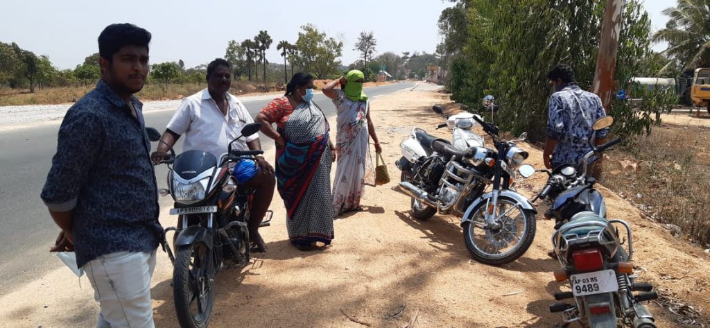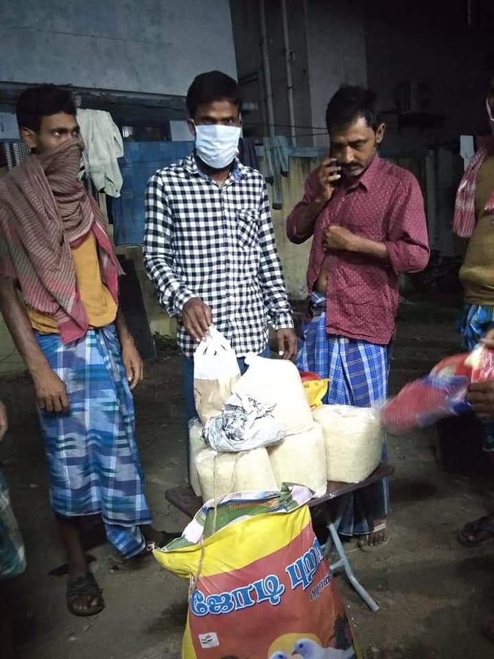 উত্তর দিনাজপুরের রায়গঞ্জের পরিযায়ী শ্রমিক। ব্যাঙ্গালোরে পার্টির তরফে রেশন প্রদান।এরই মধ্যে সোশ্যাল মিডিয়ার দৌলতে খবর ছড়িয়ে পড়ে দেশজুড়ে বাংলার পরিযায়ী শ্রমিকরা সংকটে, সাধ্যমত সাহায্যের হাত বাড়িয়ে দিয়েছেন বামপন্থীরা। একরাশ অন্ধকারে একফোঁটা আশার আলো যেন জাগে। গ্রামের বামপন্থী যুব সংগঠনের কর্মীরা সাথে সাথে যোগাযোগ করেন জেলা সিপিআই(এম) নেতৃত্বের সাথে। শ্রমিক রঞ্জন আলি সহ সকলের পরিচিতি ও ভৌগোলিক অবস্থান সম্পর্কে অবহিত করা হয় অন্ধ্রপ্রদেশের পার্টি নেতৃত্বকে। ব্যাস। আর অপেক্ষা করতে হয়নি। ১ দিনের মধ্যে পৌঁছে যায় লাল ঝান্ডার স্বেচ্ছাসেবক দল।