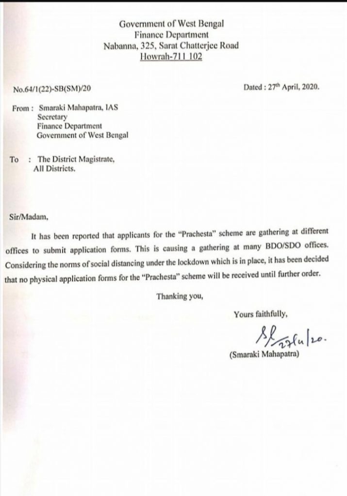 লক ডাউনের প্রভাবে জীবন জীবিকা একরকম বন্ধ সাধারণ খেটে খাওয়া মানুষের । বাম পারিষদ সহ ও কংগ্রেস পরিষদ দল লাগাতার মুখ্যমন্ত্রীর কাছে আবেদন করে আসছিলেন অসংগঠিত শ্রমিক সহ দিন আনা দিন খাওয়া মানুষদের আর্থিক সাহায্যের জন্য। কিছুটা বিরোধিদের চাপে পরেই মুখ্যমন্ত্রী প্রচেষ্টা প্রকল্প শুরু করেন। মূলতঃ অসংগঠিত শ্রমিকদের কথা বলেই এই প্রকল্প শুরু করা হয়। এই প্রকল্পে মাসে ১০০০ টাকা করে দেওয়ার কথা ঘোষণা করা হয়েছিল। দিন কয়েক আগেই বিলি করা হয়েছে প্রচেষ্টা প্রকল্পের ফর্ম। সোমবার সুনির্দিষ্ট পরিকল্পনা ও ব্যবস্থাপনা ছাড়াই আধার কার্ডসহ প্রয়োজনীয় তথ্য সমেত সেই ফর্ম জমা শুরু হয় বিভিন্ন পুরসভা ও ব্লক কার্যালয় গুলিতে।