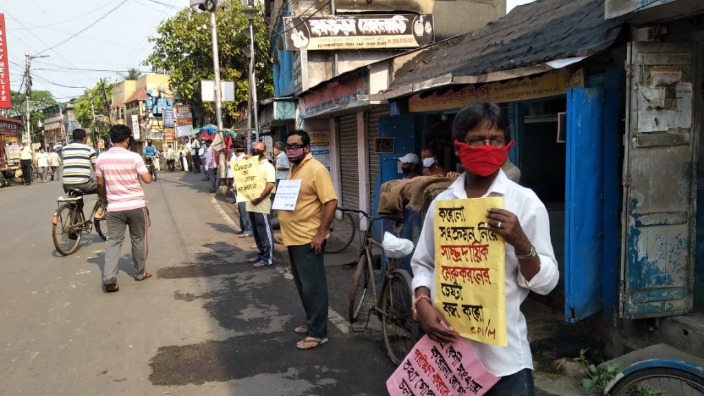 হাওড়ার শ্যামাশ্রী বটতলায়, পার্টির পক্ষ থেকে করোনা প্রতিরোধে প্রশাসনিক অব্যবস্থা ও প্রকৃত তথ্য গোপন করার বিরুদ্ধে প্রতিবাদ বিক্ষোভ চলাকালীন পুলিশ অন্যায়ভাবে পার্টির রাজ্য কমিটির সদস্য পরেশ পাল সহ আরো দু'জন কমরেডকে গ্রেফতার করে।