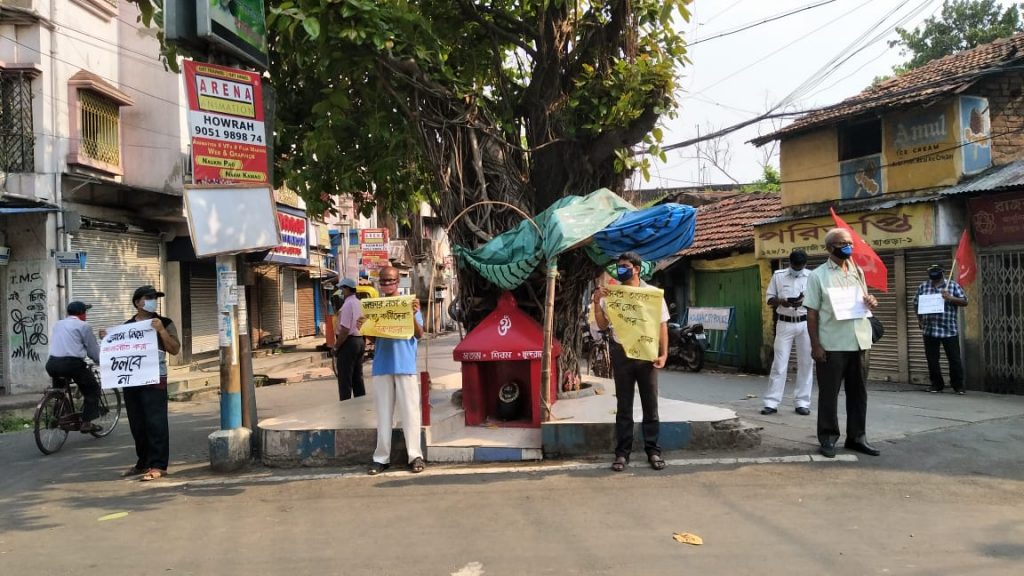 লকডাউনের নিয়মবিধি মানা সত্বেও প্রতিবাদ কর্মসূচি থেকে পার্টির নেতা কর্মীদের গ্রেফতার হাওড়ায় - পরে ছেড়ে দিতে বাধ্য হল পুলিশ