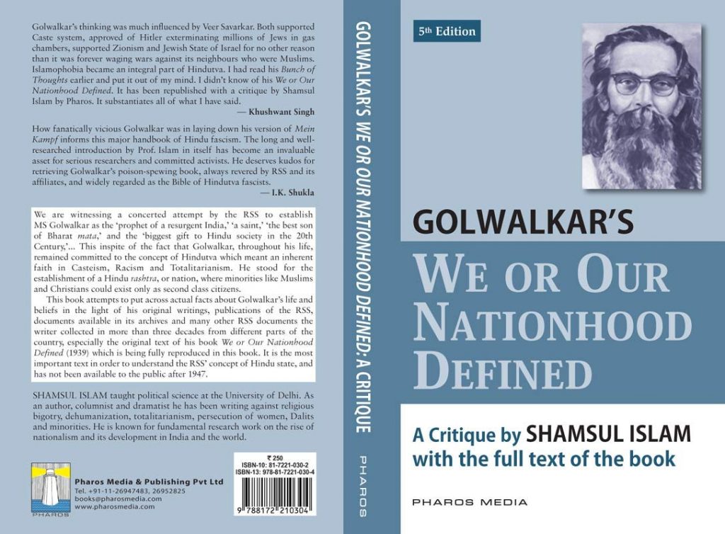 আমাদের মনে রাখা দরকার যে ১৯৩৮ সালেই গোলওয়ালকর তার "উই ,অর আওয়ার নেশন ডিফাইন্ড" নামক বইতে লিখেছিলেন;